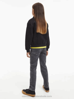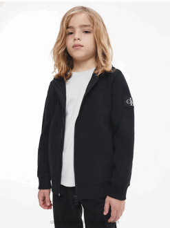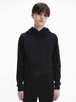 F64Z6344 Light Grey Heather Kids Calvin Klein Organic Cotton Badge Hoodie