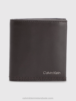 F64Z5161 Dark Brown Men Calvin Klein Leather RFID Billfold Wallet