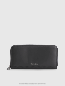 F64Z5167 Black Men Calvin Klein Leather RFID Zip Around Wallet