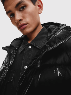 F64Z5000 Black Men Calvin Klein Oversized Shiny Puffer Jacket