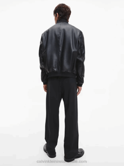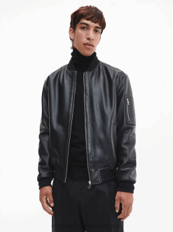 F64Z5083 Black Men Calvin Klein Relaxed Leather Bomber Jacket