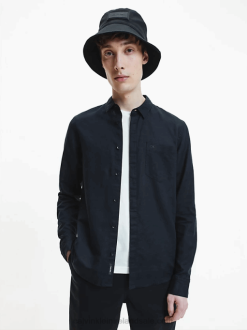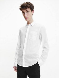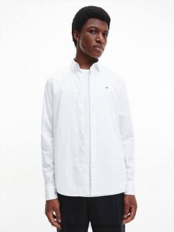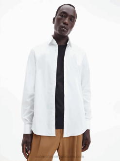 F64Z4917 Bright White Men Calvin Klein Slim Poplin Stretch Shirt