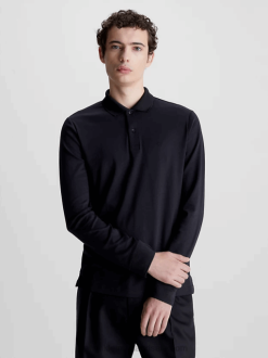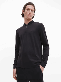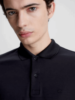 F64Z4921 Black Men Calvin Klein Slim Cotton Pique Polo Shirt