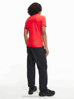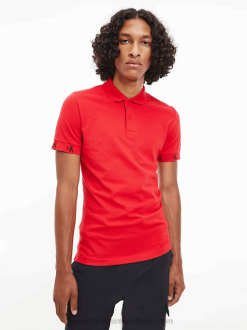 F64Z4957 Candy Apple Men Calvin Klein Slim Logo Cuff Polo Shirt