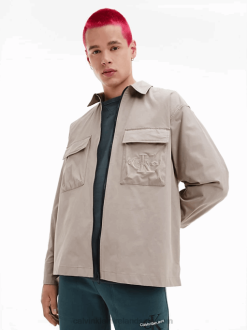 F64Z4960 Perfect Taupe Men Calvin Klein Zip Up Utility Overshirt