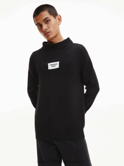F64Z4510 Black Men Calvin Klein Organic Cotton Roll Neck Jumper
