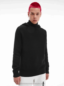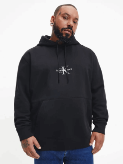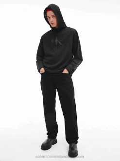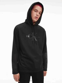 F64Z4624 Black Men Calvin Klein Organic Cotton Monogram Hoodie