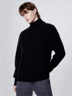 F64Z4710 Black Men Calvin Klein Relaxed Wool Harness Detail Jumper