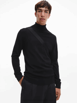 F64Z4876 Black Men Calvin Klein Merino Wool Roll Neck Jumper