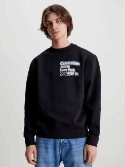 F64Z4169 Black Men Calvin Klein Organic Cotton Printed Sweatshirt