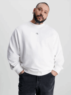 F64Z4433 Bright White Men Calvin Klein Relaxed Monogram Sweatshirt