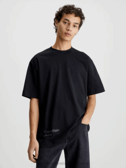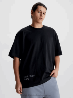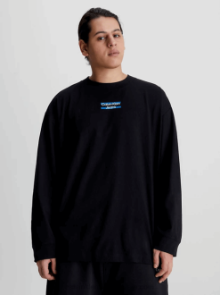 F64Z4399 Black Men Calvin Klein Oversized Long Sleeve T-shirt