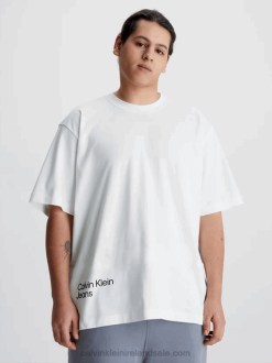 F64Z4380 Bright White Men Calvin Klein Relaxed Back Logo T-shirt