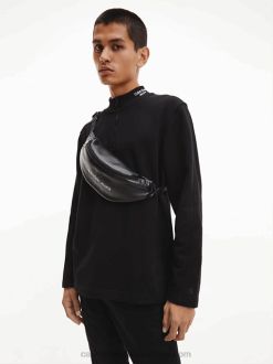 F64Z4525 Black Men Calvin Klein Zip Neck Long Sleeve T-shirt