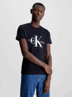 F64Z4686 Black Men Calvin Klein Slim Organic Cotton Logo T-shirt
