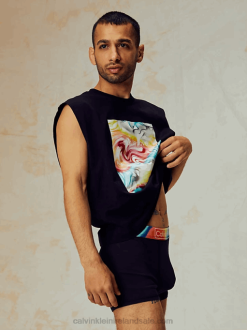 F64Z5024 Black Men Calvin Klein Recycled Cotton Badge T-shirt