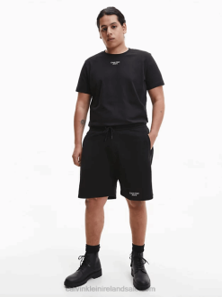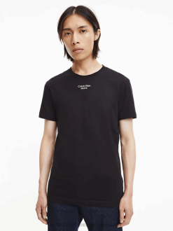 F64Z6618 Black Men Calvin Klein Logo Collar Long Sleeve T-shirt