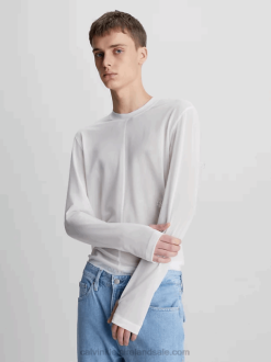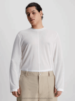 F64Z3909 Bright White Men Calvin Klein Slim Mesh Long Sleeve Top