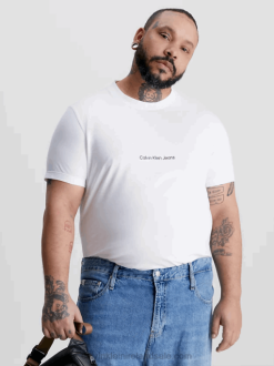F64Z3940 Stony Beige Men Calvin Klein Ribbed Interlock T-shirt