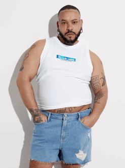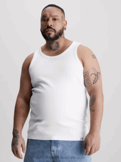 F64Z3910 Bright White Men Calvin Klein Slim Cut Out Tank Top