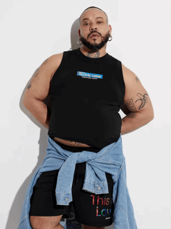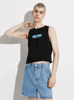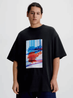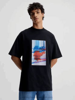 F64Z4069 Black Men Calvin Klein Oversized Embroidered T-shirt