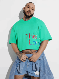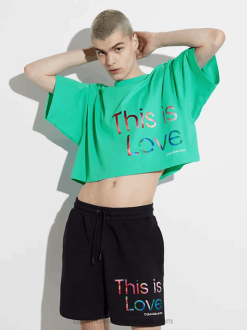 F64Z4092 Aqua Green Men Calvin Klein Oversized Cropped T-shirt