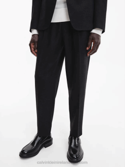 F64Z4850 Black Men Calvin Klein Virgin Wool Cropped Trousers