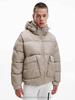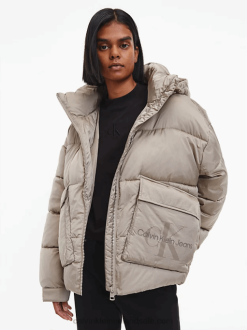 F64Z2464 Eggshell Women Calvin Klein Faux Suede Puffer Jacket