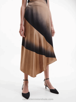 F64Z2383 Architectural Spray/Safari Canvas Women Calvin Klein Shadow Print Asymmetric Skirt