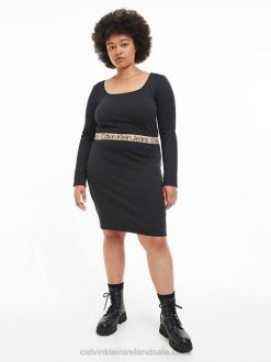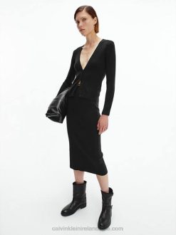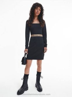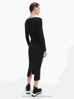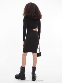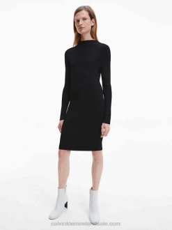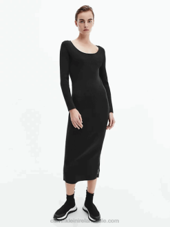 F64Z2446 Black Women Calvin Klein Recycled Polyester Jumper Dress