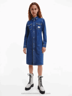 F64Z2418 Denim Medium Women Calvin Klein Denim Midi Shirt Dress