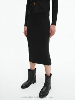 F64Z2416 Black Women Calvin Klein Plus Size Rib-Knit Maxi Dress