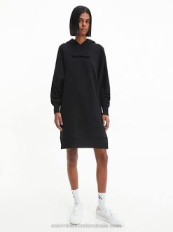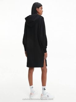 F64Z1952 Black Women Calvin Klein Relaxed Hooded Sweatshirt Dress