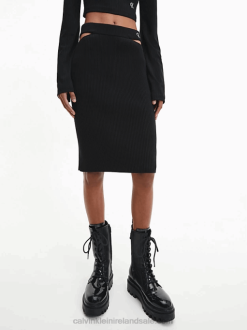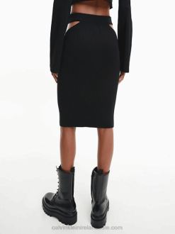 F64Z1956 Black Women Calvin Klein Sheer Panel Bodycon Midi Dress