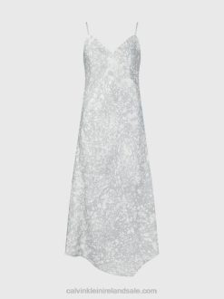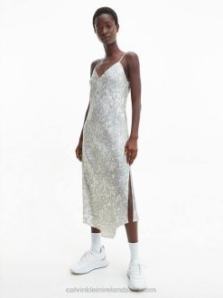 F64Z2023 Disrupted Logo Aop Ghost Grey/White Women Calvin Klein All-Over Printed Slip Dress