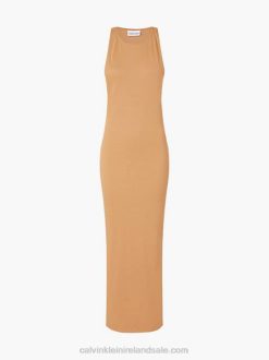 F64Z2015 Willow Green Women Calvin Klein Ribbed Flared Midi Skirt