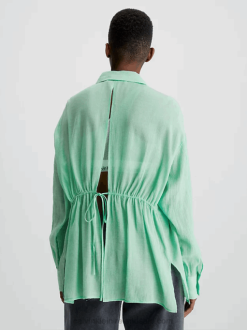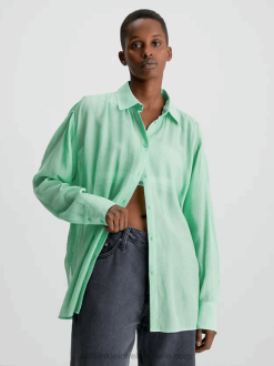 F64Z2036 Moss Gray Women Calvin Klein Oversized Sheer Tencel Shirt