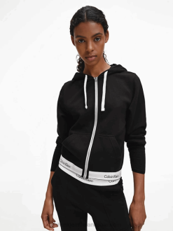 F64Z1393 Black W. Old Gold Logo Women Calvin Klein Lounge Hoodie