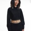 F64Z1870 Black Women Calvin Klein Cropped Drawstring Sweatshirt