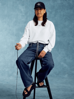 F64Z2266 Bright White Women Calvin Klein Cropped Logo Sweatshirt