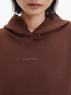 F64Z2347 Dark Chestnut Women Calvin Klein Recycled Polyester Hoodie