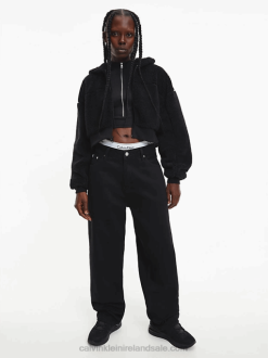 F64Z2334 Black Women Calvin Klein Unisex Oversized Logo Sweatshirt