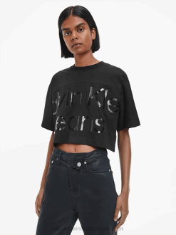 F64Z2021 Black Women Calvin Klein Cropped Gloss Logo T-shirt