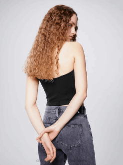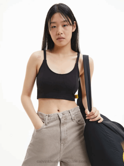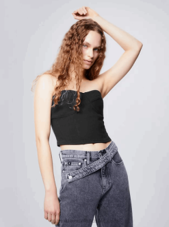 F64Z2282 Black Women Calvin Klein Recycled Cotton Bustier Top