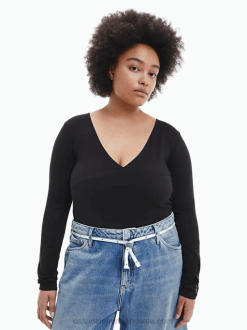 F64Z2343 Black Women Calvin Klein Plus Size Long Sleeve Wrap Top