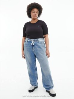 F64Z2344 Black Women Calvin Klein Slim Cropped Badge T-shirt