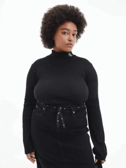 F64Z2371 Black Women Calvin Klein Plus Size Ribbed Mock Neck Top