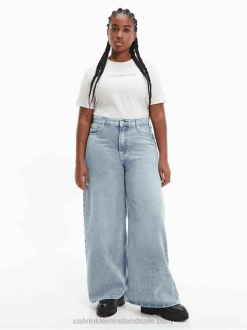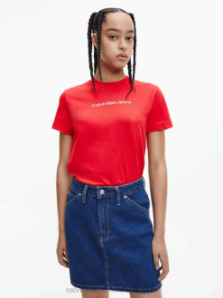 F64Z2486 Bright White Women Calvin Klein Slim Monogram T-shirt