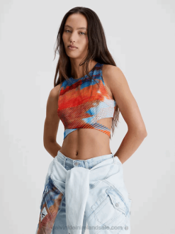 F64Z555 Shitake Women Calvin Klein Cropped Monogram Tank Top