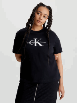 F64Z1749 Black Women Calvin Klein Plus Size Monogram T-shirt